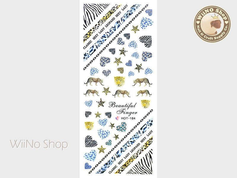 Blue Leopard Pattern Water Slide Nail Art Decals - 1pc (HOT-184)
