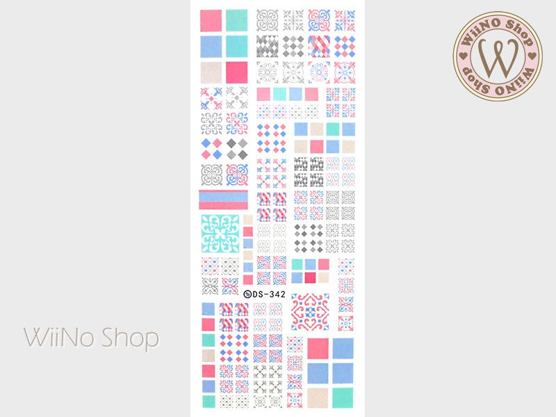 Moroccan Mosaic Pattern Water Slide Nail Art Decals - 1pc (DS-341)