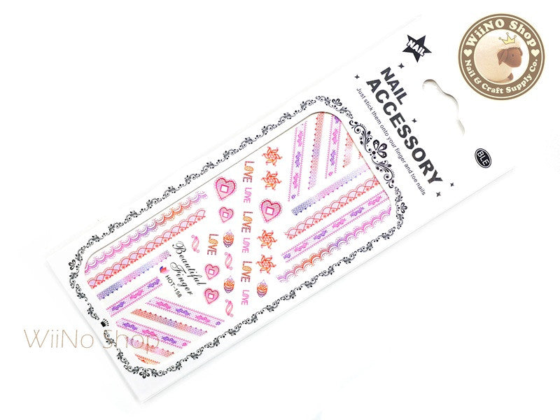 Pink Gradient Lace Pattern Water Slide Nail Art Decals - 1pc (HOT-158)