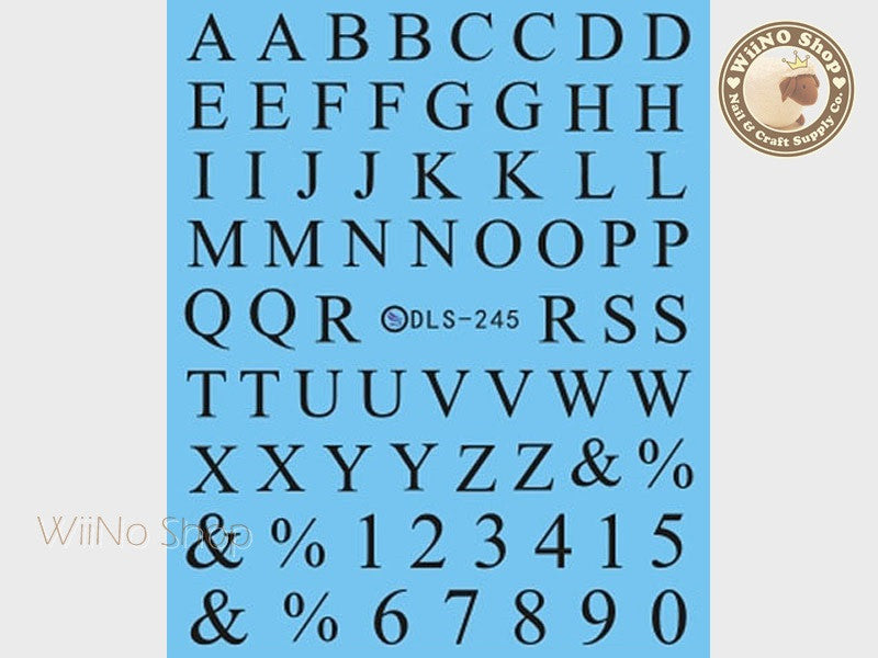 Black Alphabet Letters Water Slide Nail Art Decals - 1pc (DLS-245)