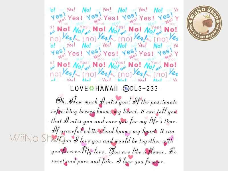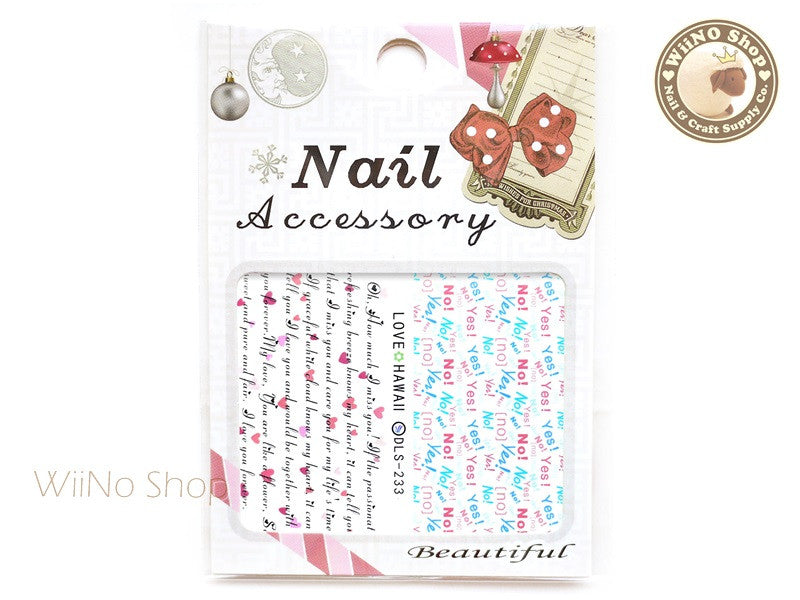 Lovely Yes No Text Pattern Water Slide Nail Art Decals - 1pc (DLS-233)