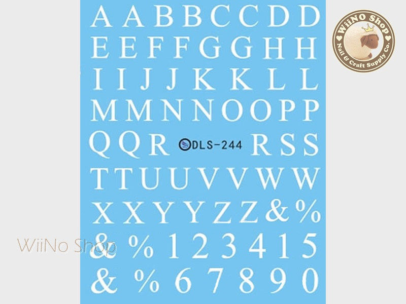 White Alphabet Letters Water Slide Nail Art Decals - 1pc (DLS-244)