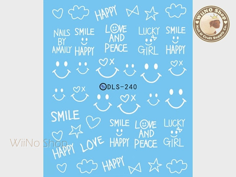 White Happy Love Peace Water Slide Nail Art Decals - 1pc (DLS-240)