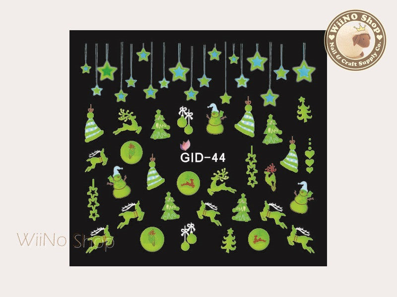GID-044 Christmas Glow In The Dark Water Slide Nail Art Decals - 1pc