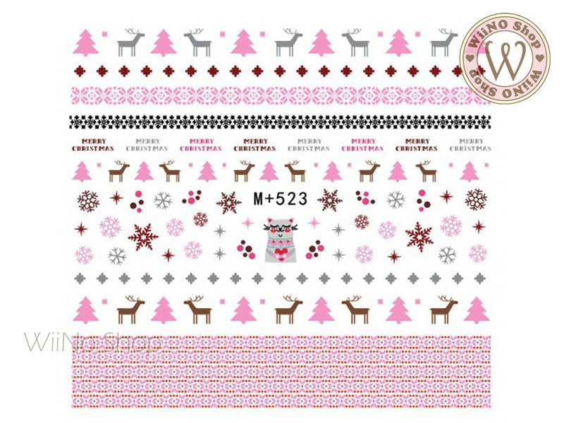 M+523 Pink Sweater Pattern Water Slide Nail Art Decals - 1pc
