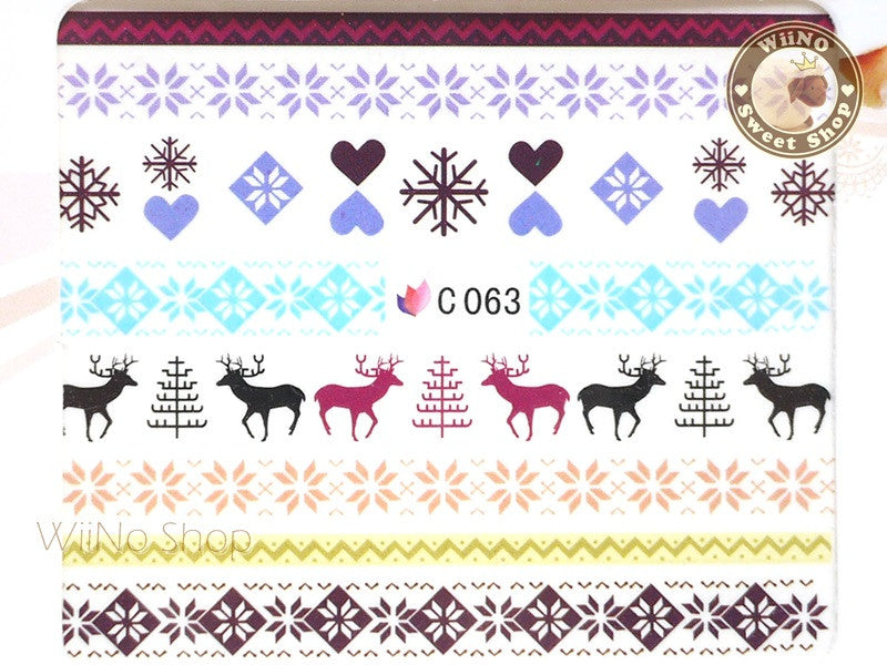 Reindeer Blue Winter Knit Style Pattern Water Slide Nail Art Decals - 1pc (C63)