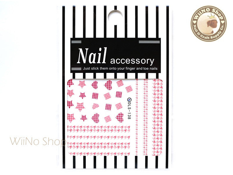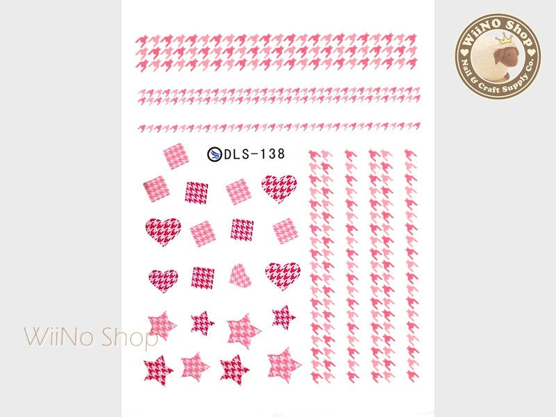 Pink Houndstooth Water Slide Nail Art Decals - 1pc (DLS-138)