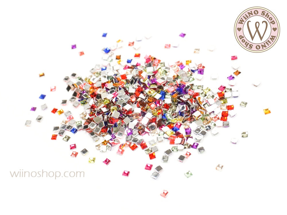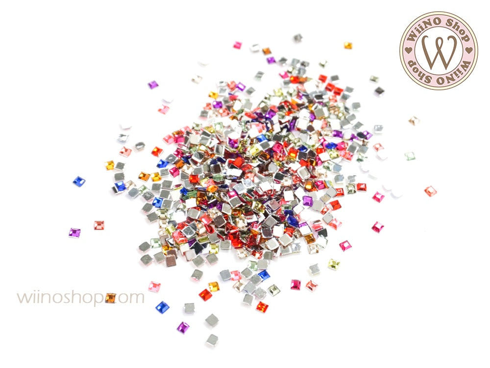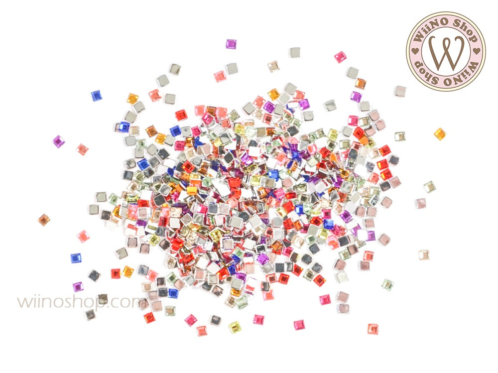 2mm Mix Colors Square Flatback Acrylic Rhinestone - 100 pcs