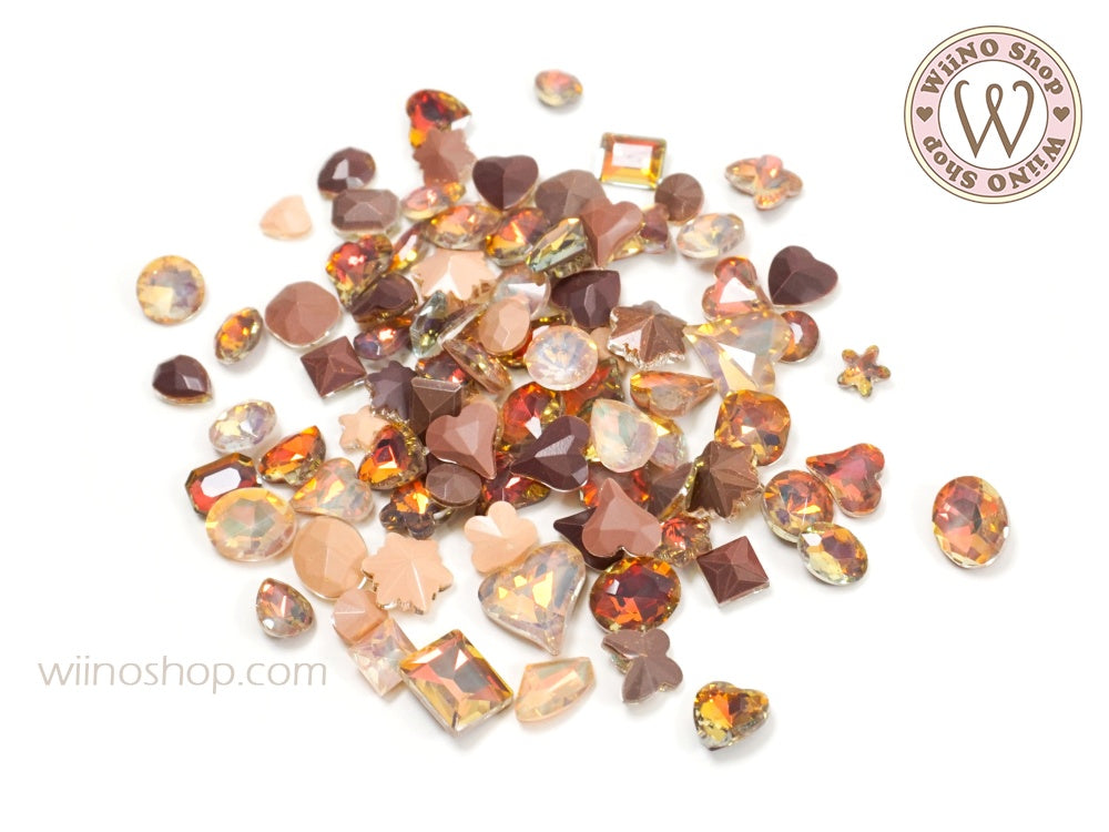 Autumn Glow Nail Crystals Mix – Soft Nude & Smoky Blue AB Crystals