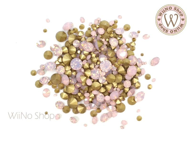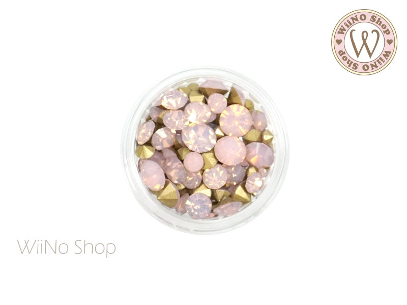 Pink Opal Round Point Back Crystal Mix Sizes