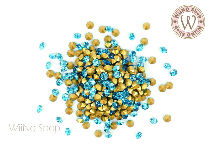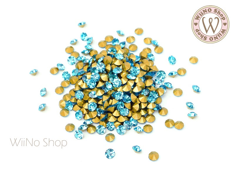 ss12 Blue Aquamarine Round Point Back Crystal - 50 pcs