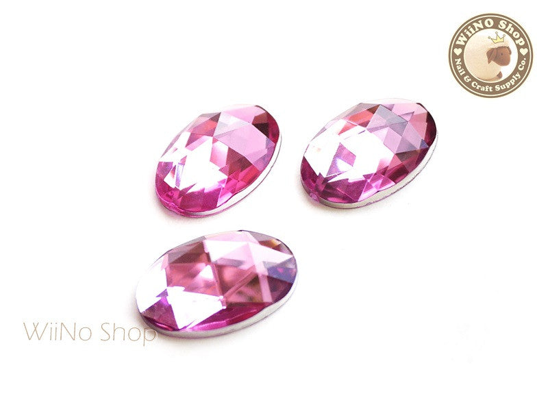 25 x 18mm Pink Rose Oval Flat Back Acrylic Rhinestone - 4 pcs