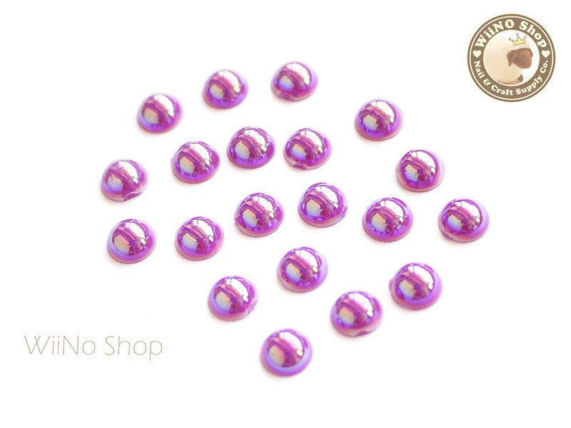 5mm AB Metallic Purple Half Round Flat Back Acrylic Cabochon Nail Art - 15 pcs