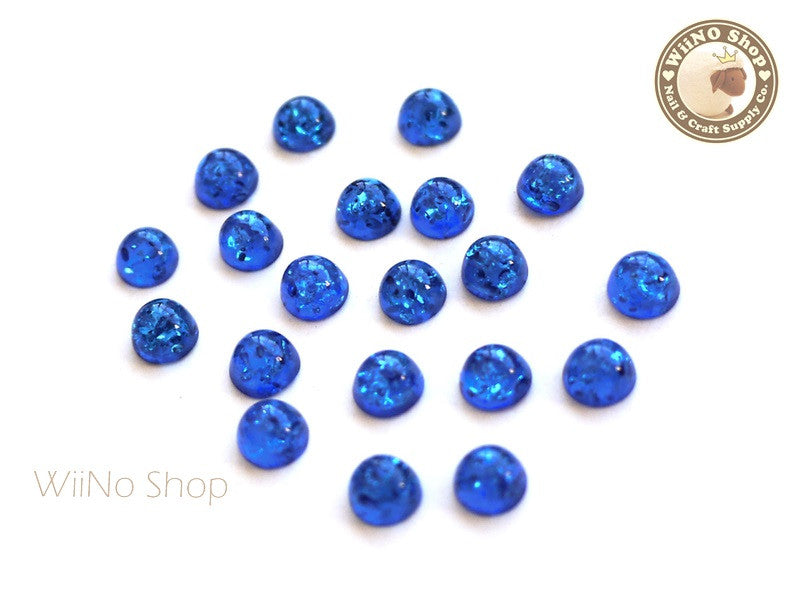 6mm Dark Blue Ice Crackle Round Flat Back Acrylic Cabochon Nail Art - 10 pcs
