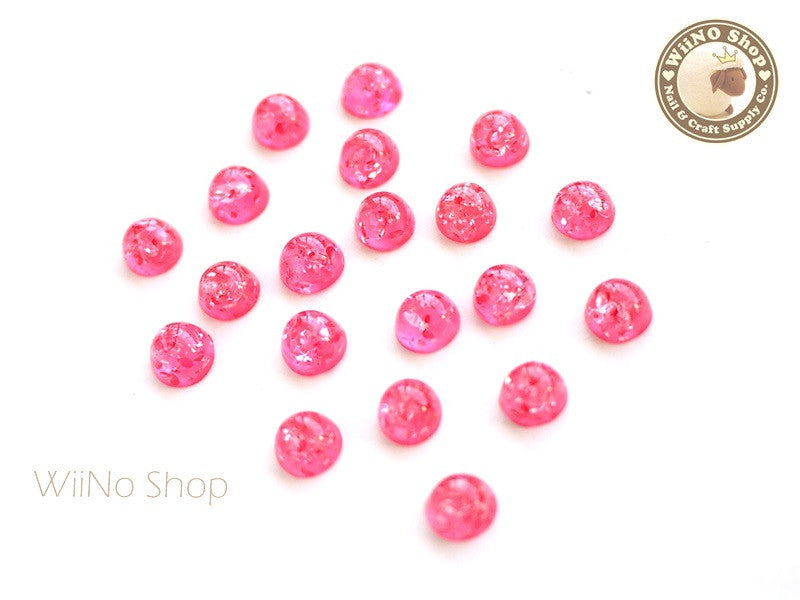 6mm Raspberry Red Ice Crackle Round Flat Back Acrylic Cabochon Nail Art - 10 pcs