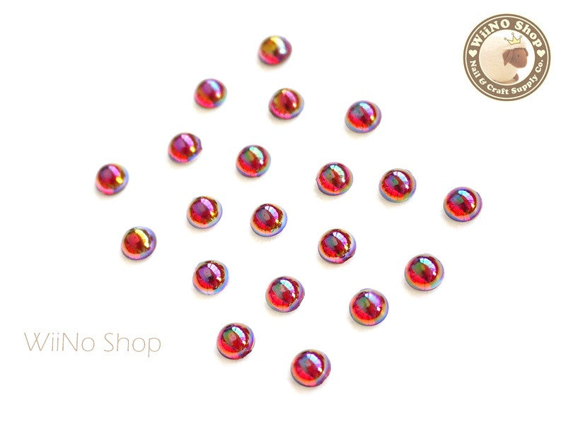 5mm AB Metallic Red Half Round Flat Back Acrylic Cabochon Nail Art - 15 pcs