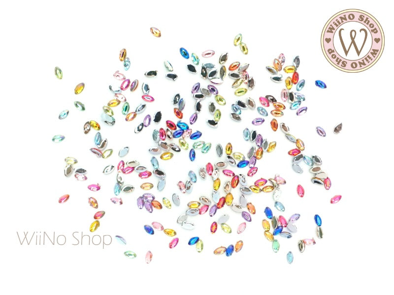1.5x3mm AB Mix Colors Marquise Flatback Acrylic Rhinestone - 100 pcs
