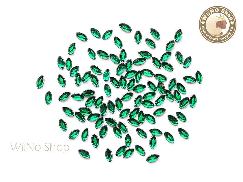 4 x 2mm Dark Green Marquise Navette Flat Back Acrylic Rhinestone Nail Art - 100 pcs
