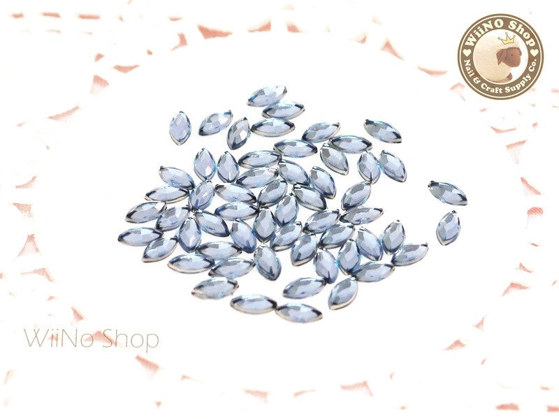 6 x 3mm Light Sapphire Blue Marquise Navette Flat Back Acrylic Rhinestone Nail Art - 100 pcs