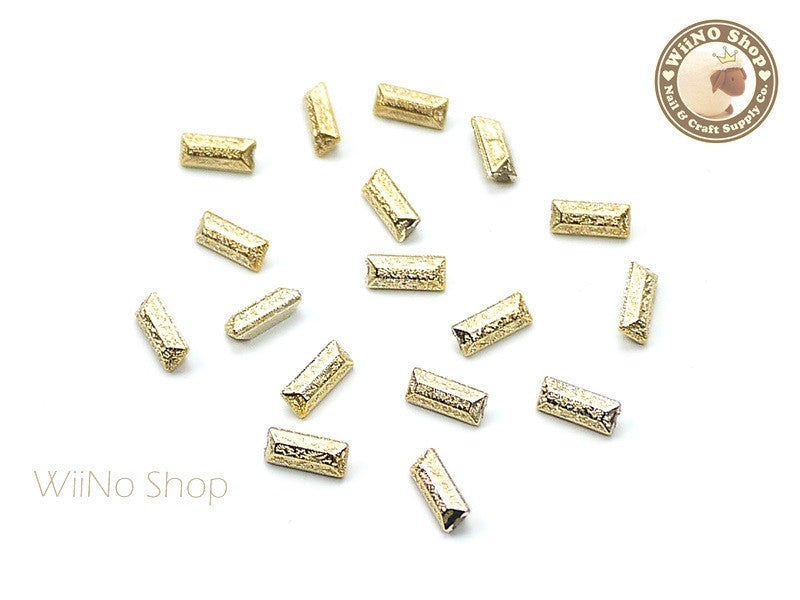 7 x 3mm Gold Textured Rectangle 3D Point Back Rhinestone - 10 pcs