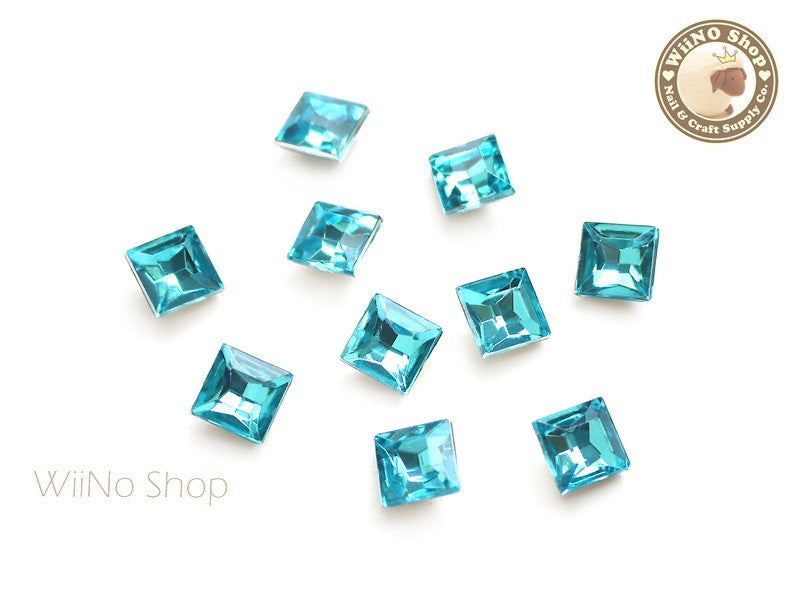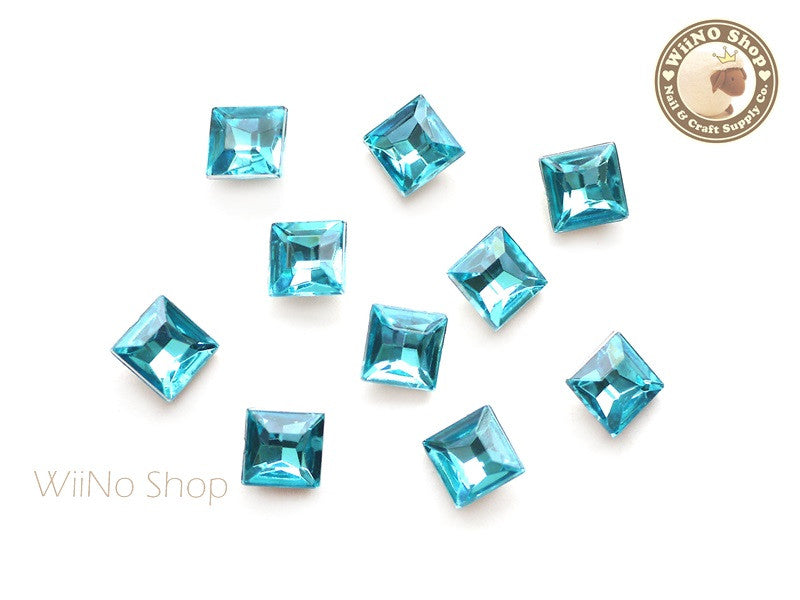 8mm Blue Aquamarine Square 3D Point Back Acrylic Rhinestone - 15 pcs