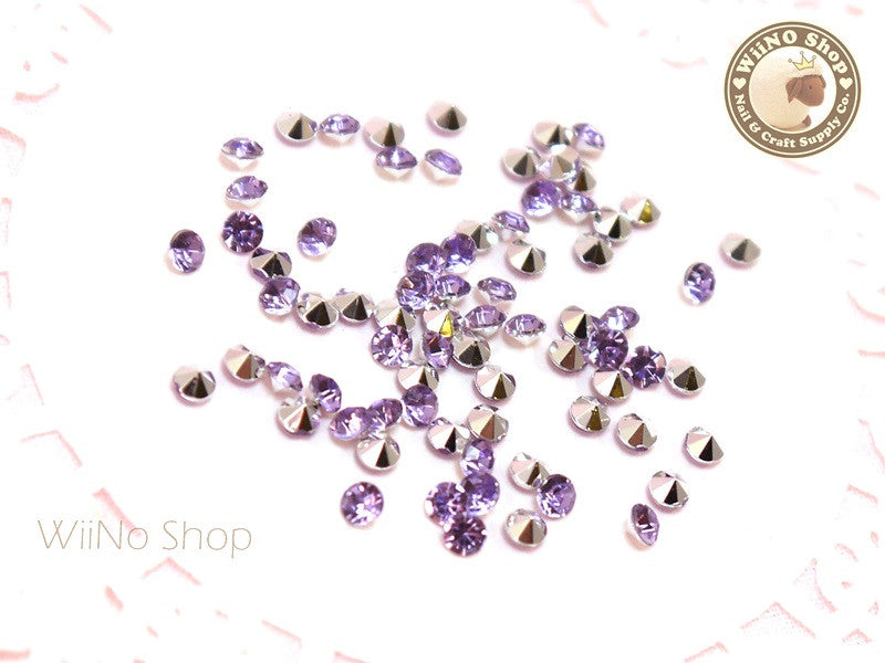 3mm Purple Lavender Round Diamond Style 3D Point Back Acrylic Rhinestone - 50 pcs