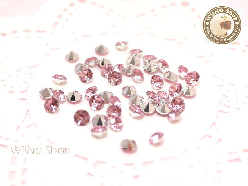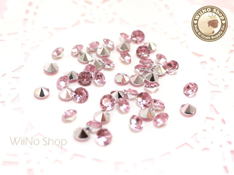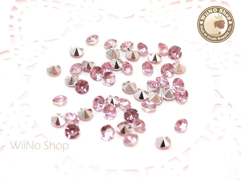 5mm Pink Light Rose Round Diamond Style 3D Point Back Acrylic Rhinestone - 50 pcs
