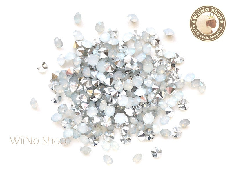 ss18 White Opal Round Diamond Style 3D Point Back Acrylic Rhinestone - 50 pcs