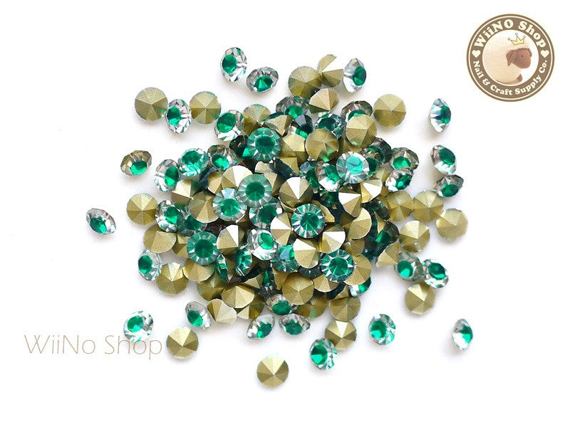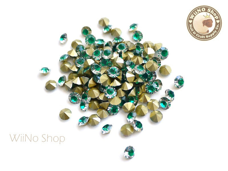 ss20 Green Clear Two Tone Round Diamond Style 3D Point Back Acrylic Rhinestone - 25 pcs