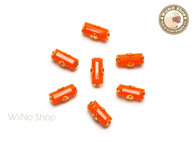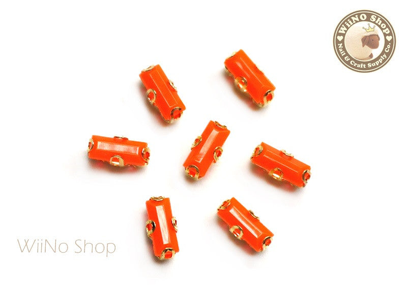 3 x 7mm Orange Rectangle Acrylic Rhinestone with Setting - 5 pcs