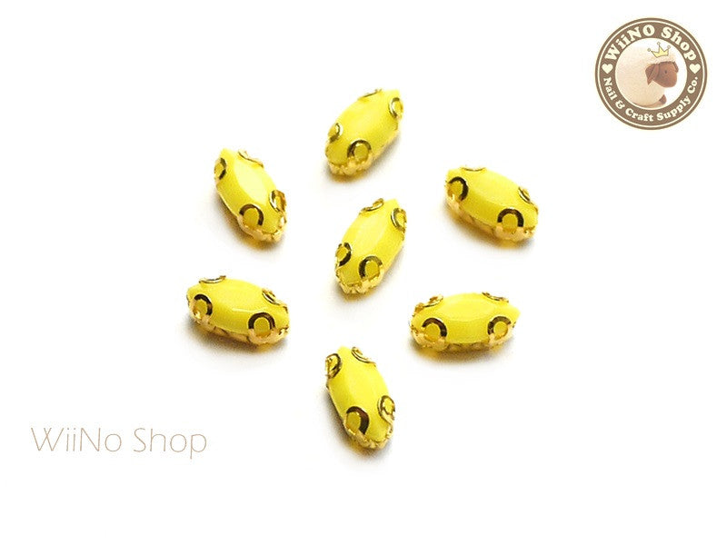 4 x 8mm Yellow Marquise Acrylic Rhinestone with Setting - 5 pcs