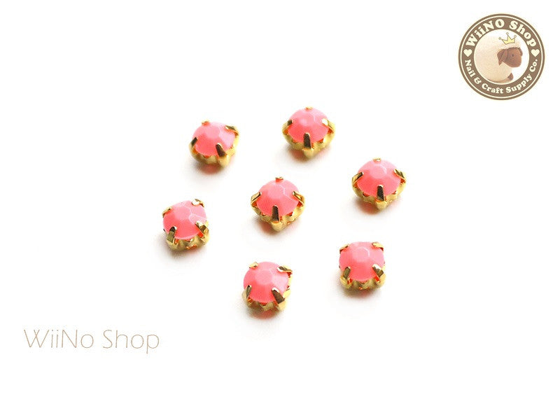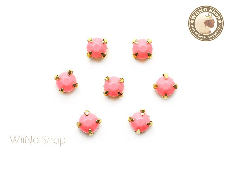 5mm Coral Round Acrylic Rhinestone with Setting - 5 pcs