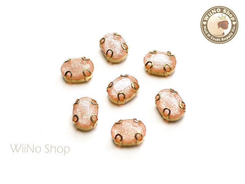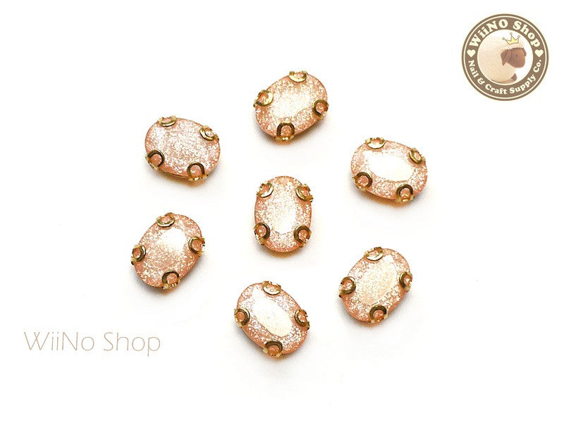 6 x 8mm Glitter Peach Oval Acrylic Rhinestone with Setting - 5 pcs