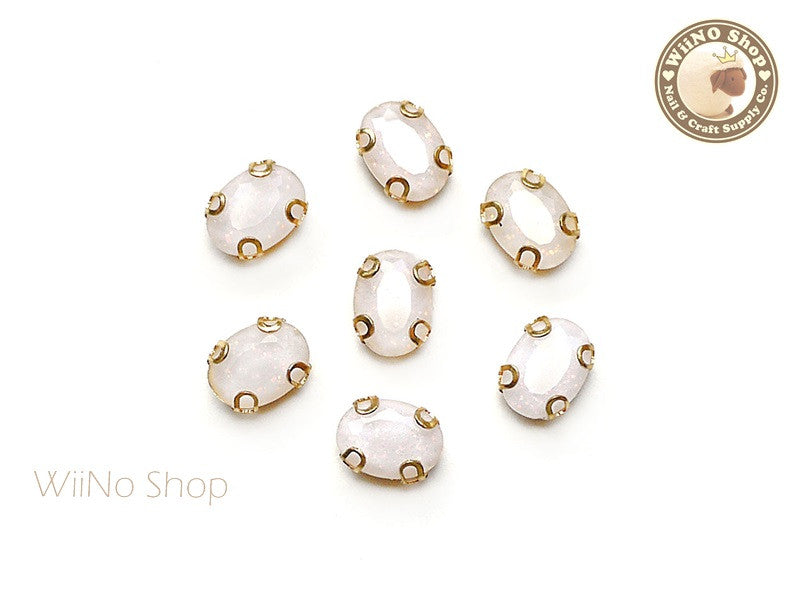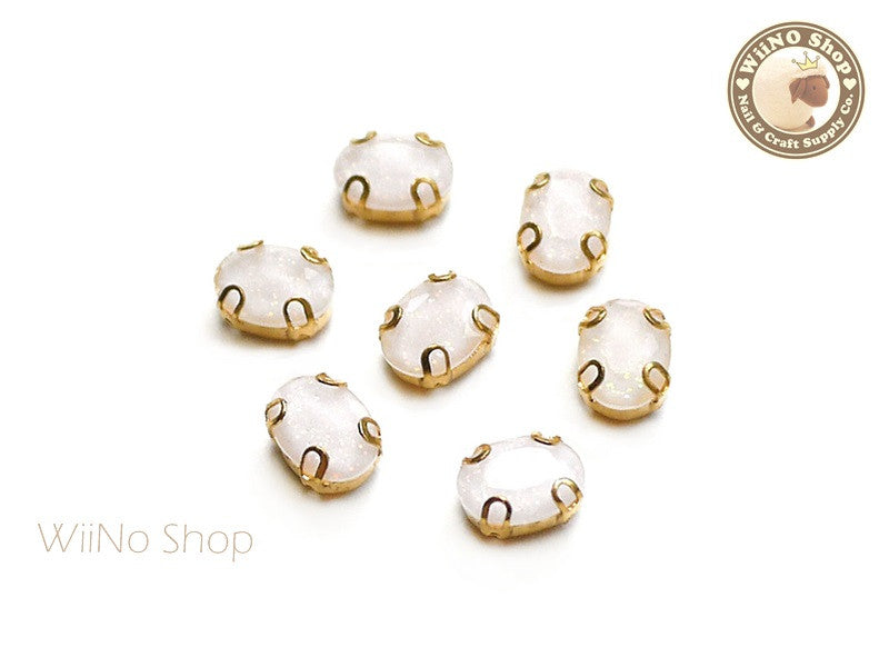 6 x 8mm Glitter White Oval Acrylic Rhinestone with Setting - 5 pcs