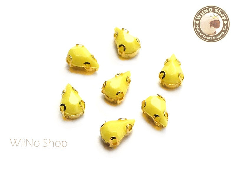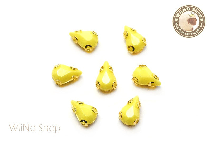 5 x 8mm Yellow Drop Acrylic Rhinestone with Setting - 5 pcs