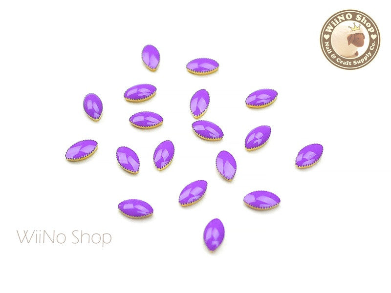 7 x 4mm Purple Marquise Enamel Cabochon with Setting - 5 pcs