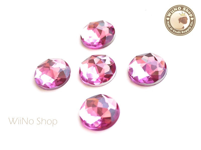 15mm Pink Rose Round Flat Back Acrylic Rhinestone - 5 pcs