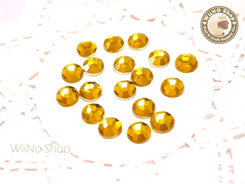 8mm Yellow Topaz Round Flatback Acrylic Rhinestone - 50 pcs