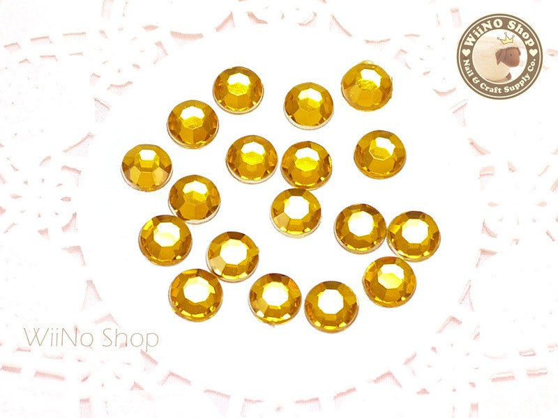 8mm Yellow Topaz Round Flatback Acrylic Rhinestone - 50 pcs