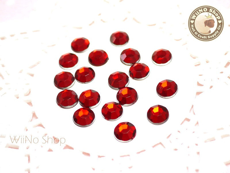 8mm Red Light Siam Round Flatback Acrylic Rhinestone - 50 pcs
