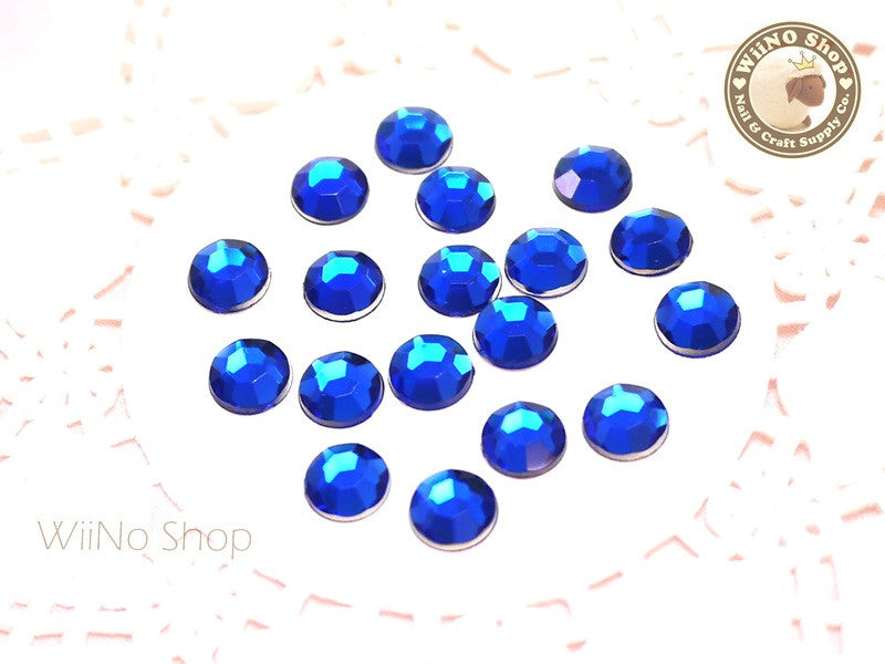 8mm Royal Blue Cobalt Round Flatback Acrylic Rhinestone - 50 pcs