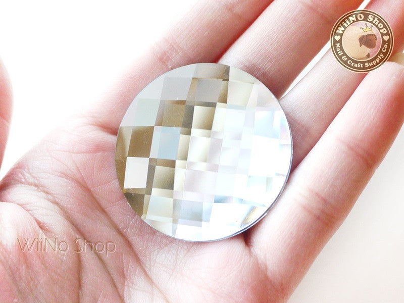 40mm Large Clear Round Square Cut Flat Back Acrylic Rhinestone - 1 pc