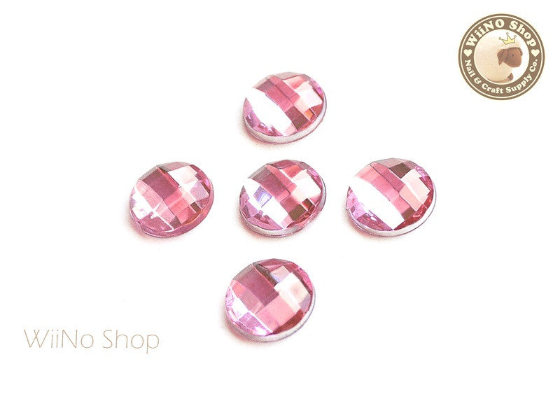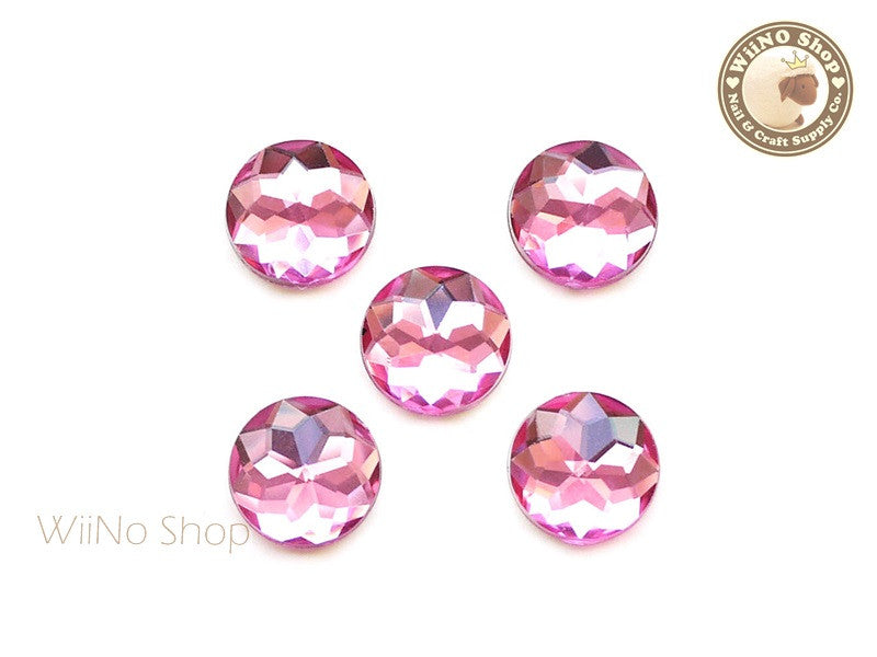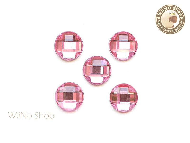 12mm Pink Light Rose Round Square Cut Flat Back Acrylic Rhinestone - 5 pcs
