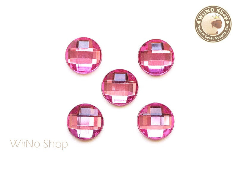 12mm Fuchsia Hot Pink Round Square Cut Flat Back Acrylic Rhinestone - 5 pcs