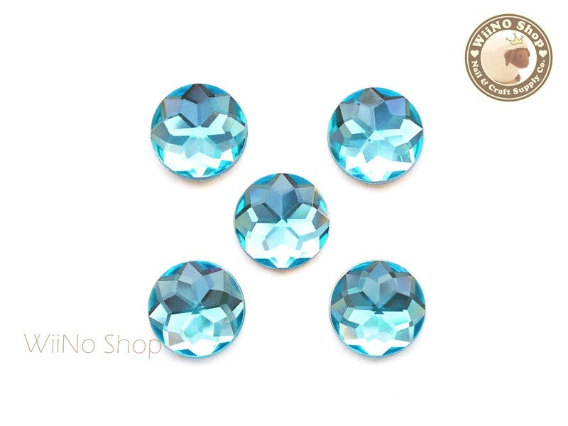 15mm Blue Aquamarine Round Flat Back Acrylic Rhinestone - 5 pcs