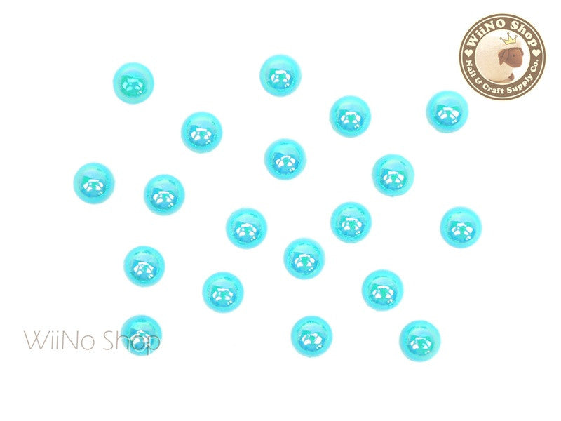 5mm AB Metallic Blue Half Round Flat Back Acrylic Cabochon Nail Art - 15 pcs
