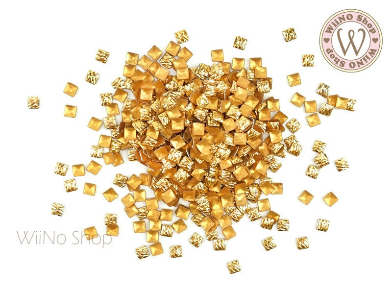 3mm Gold Crisscross Square Metal Studs - 50 pcs