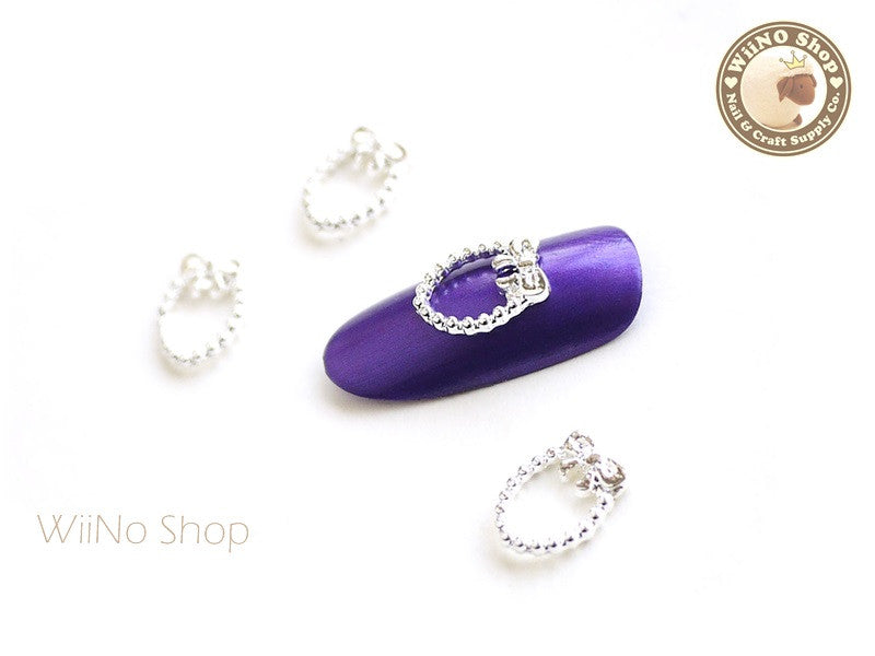 Bow Frame Silver Nail Metal Charm - 2 pcs