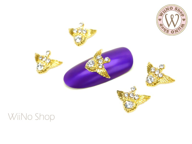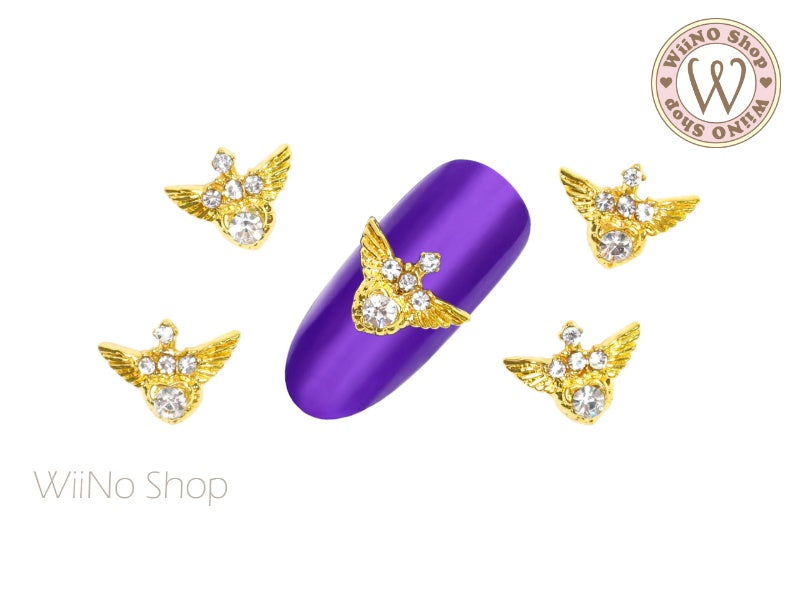 Crystal Heart Wings Nail Metal Charm - 2 pcs