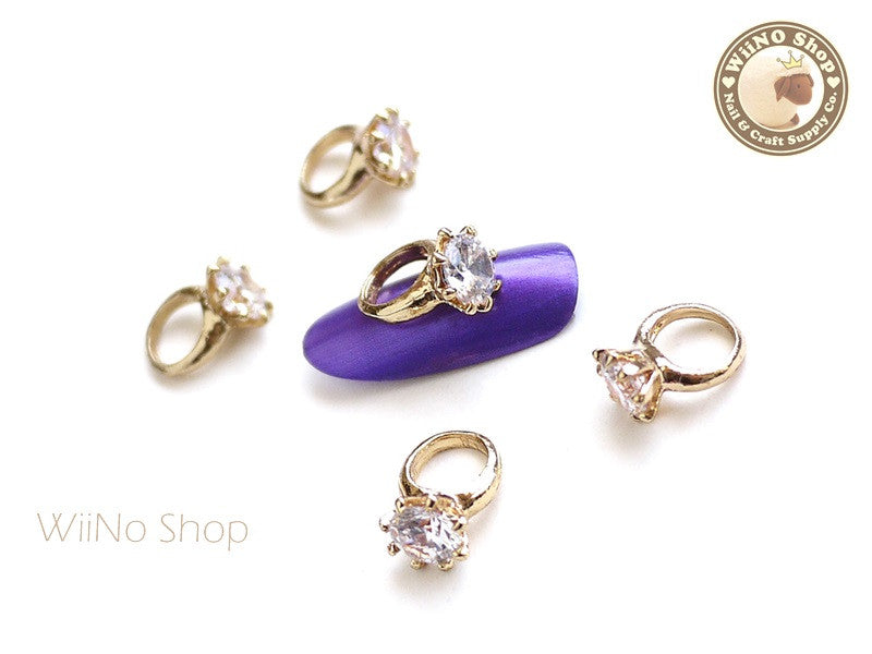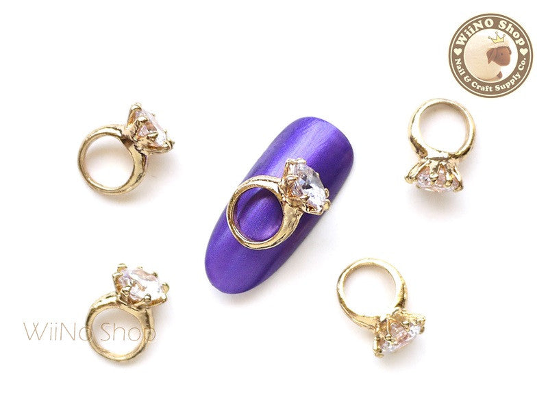 Gold Diamond Ring Nail Metal Charm - 2 pcs